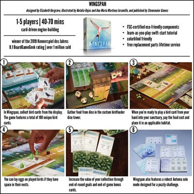 "You are bird enthusiasts—researchers, bird watchers, ornithologists, and collectors—seeking to discover and attract the best birds to your network of wildlife preserves. Each bird extends a chain of powerful combinations in one of your habitats"